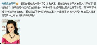 未婚怀孕,对于任何人来说都是一个巨大的挑战。而对于娱乐圈的明星来说,这个挑战更是严峻。他们不仅要承受来自外界的压力,还要面对来自粉丝的质疑。这种压力,让人不禁为他们的未来感到担忧。